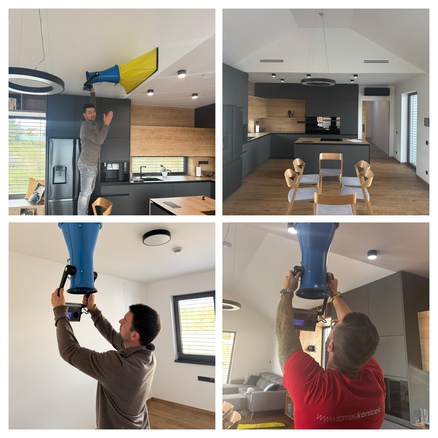 V tomto konkrétním domě je použit kompletní systém řešení Air Excellent, navíc s připojeným zvlhčovačem HUMON. Koncové prvky jsou komplet od firmy Ventmann.