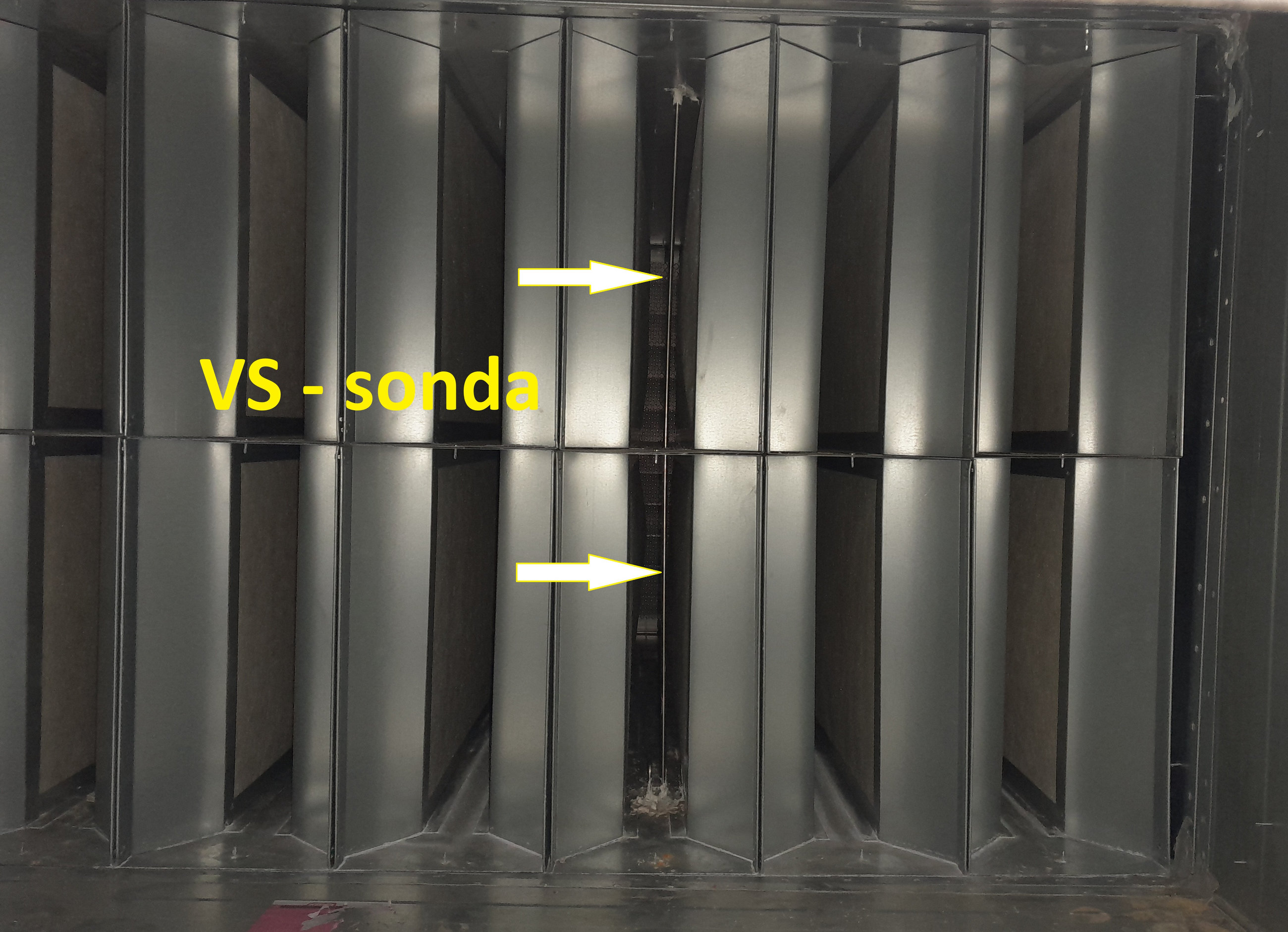 Obr. 3 VS sonda je umístěna v komoře dvou tlumičů umístěných těsně nad sebou (potrubí 1 000 × 2 000)