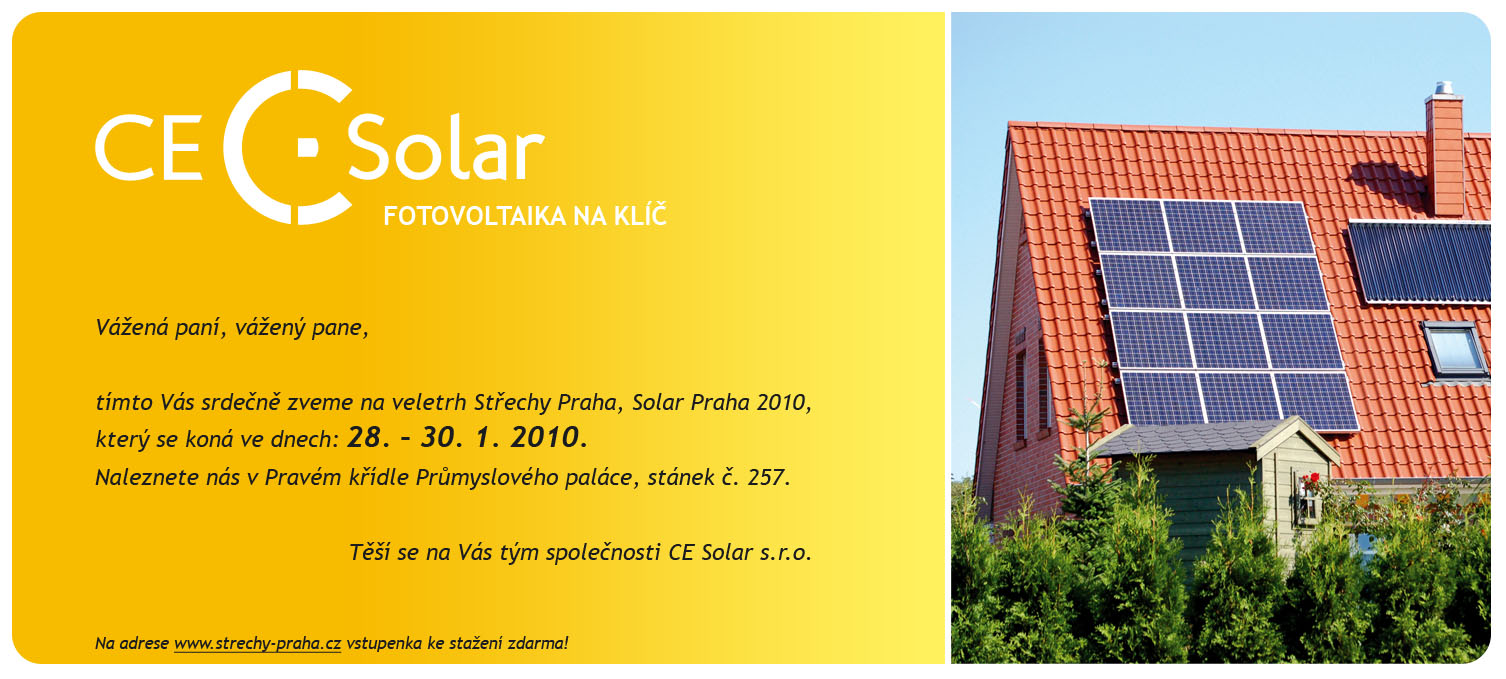 CE Solar si Vás dovoluje pozvat na svoji expozici na výstavě Střechy Praha