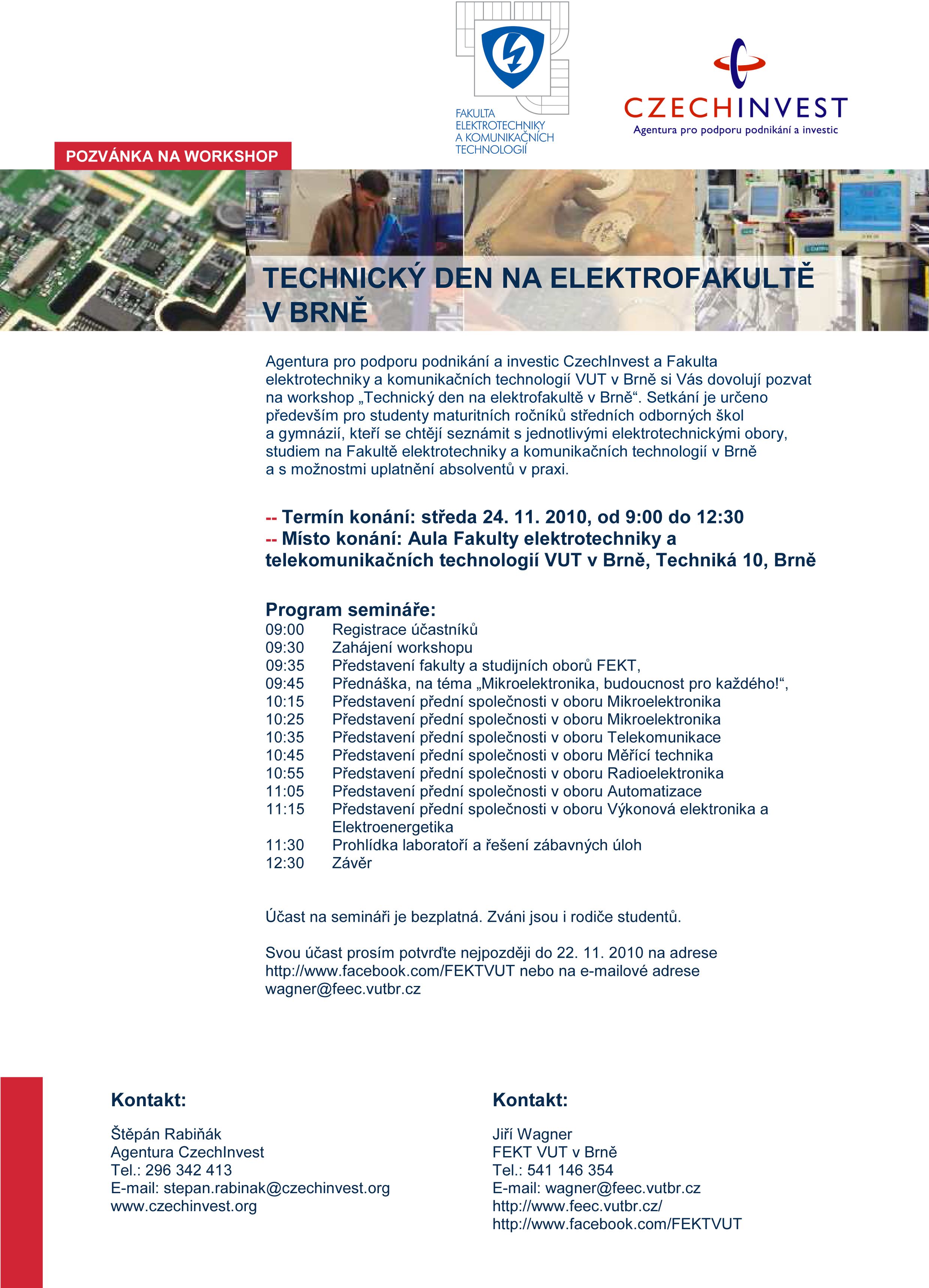 pořadatel:Agentura pro podporu podnikání a investic CzechInvest a Fakulta elektrotechniky a komunikačních technologií VUT v Brně