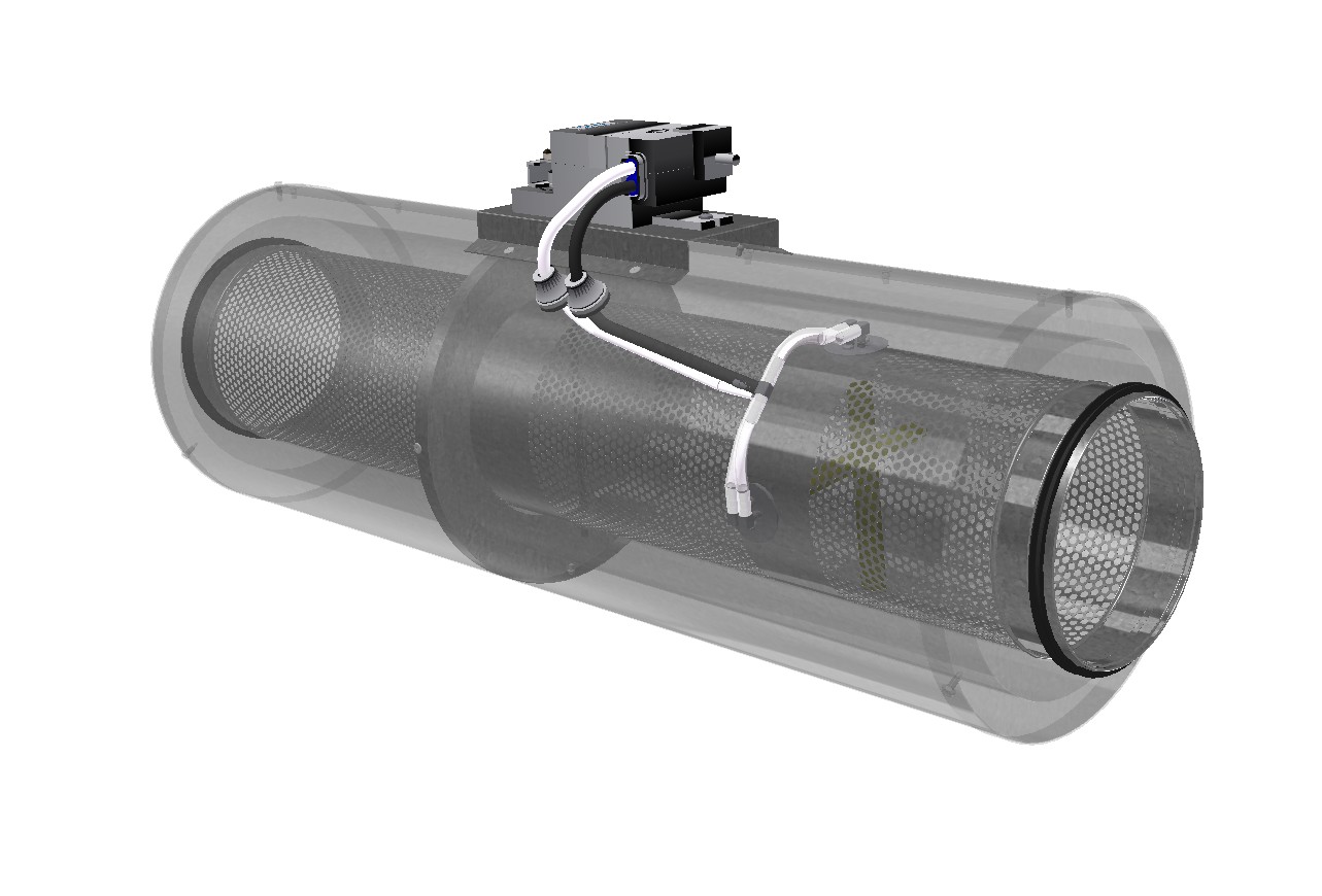 Speciálně navržená konstrukce regulátoru je hybridním řešením regulace průtoku s vestavěným tlumičem hluku, a proto nenavyšuje instalační délku o případný dodatečný tlumič a díky integrované vzduchové bariéře nedochází k proudění vzduchu skrze akusticky pohltivý materiál při plně uzavřené regulační klapce.