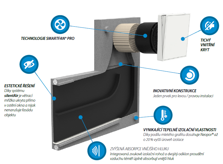 Vyšší komfort: Jednotky zajišťují neustálý přívod čerstvého vzduchu a současně brání pronikání venkovního hluku, pylu a prachu.
