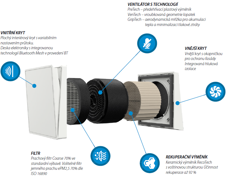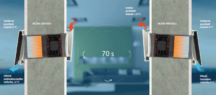 Snadná instalace: Jednotky se instalují přímo do obvodové stěny, což umožňuje jednoduchou a rychlou montáž bez nutnosti rozsáhlých stavebních zásahů. Ideální pro novostavby i rekonstrukce.