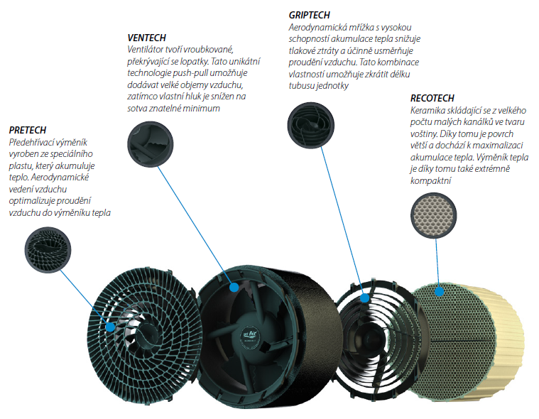Energetická úspora: Díky vysoce účinné rekuperaci tepla se minimalizují energetické ztráty a výrazně se snižují náklady na vytápění.