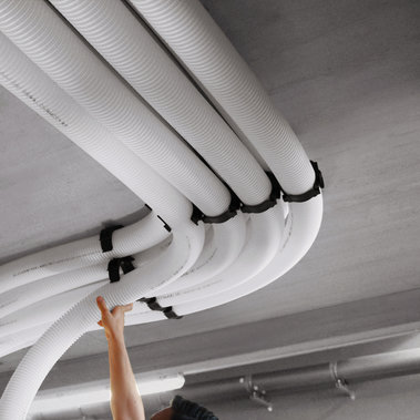 Obrázek č. 2: Kulaté potrubí Zehnder ComfoTube Flow je vhodné pro širokou škálu instalačních situací, ať už ve stropních podhledech, betonových stropech, ve vrstvě izolace v podlaze nebo stoupačkách.
